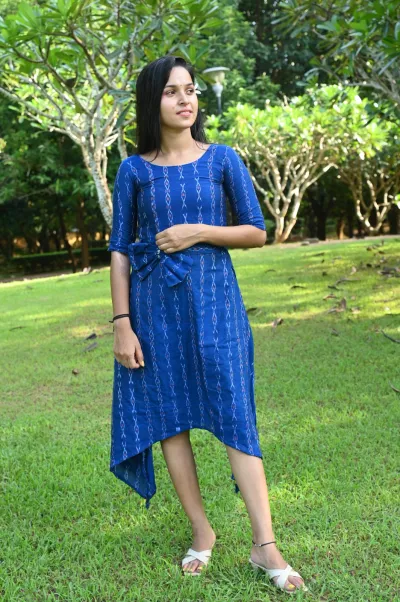 Sambalpuri Stylish One Piece Flared Midi Dress (one-piece) with ethnic Ikat pattern