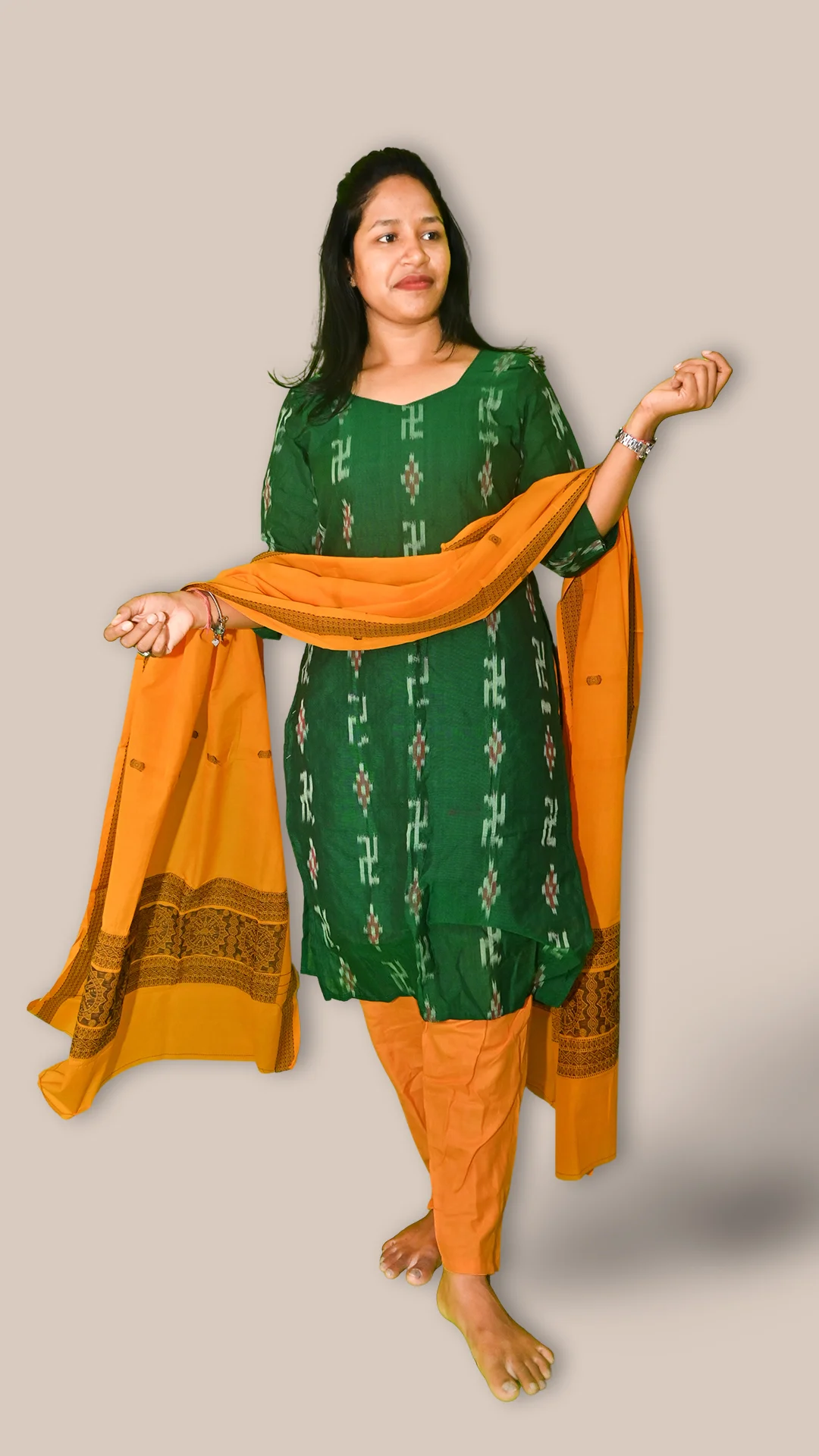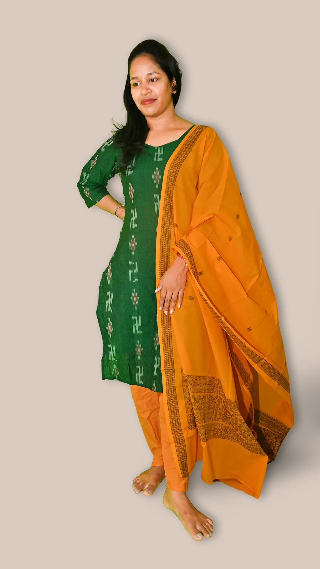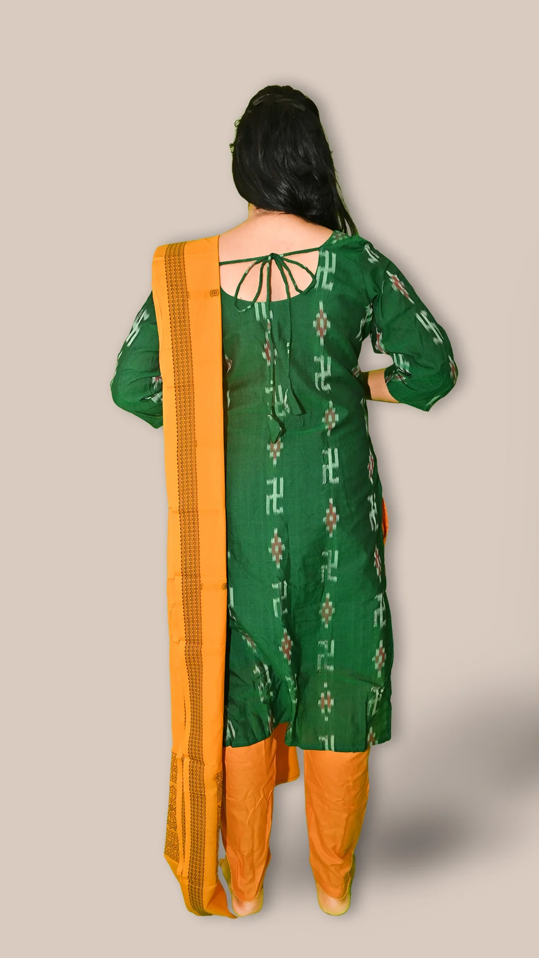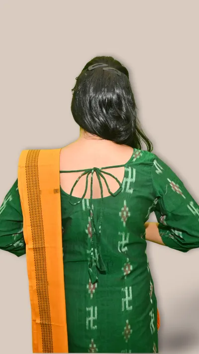 STICHED-Sambalpuri Salwar Kameez with Dupatta, Dark green color
