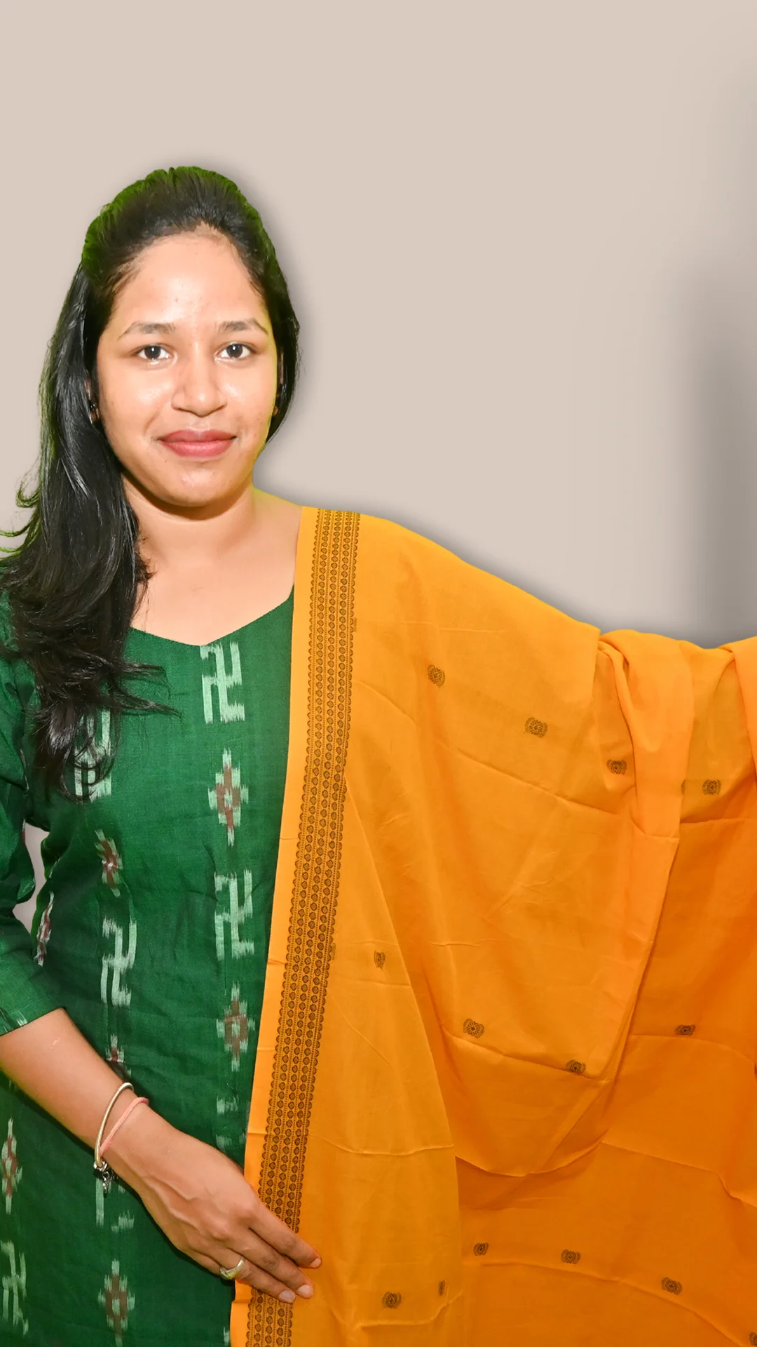 STICHED-Sambalpuri Suit set deep green and bright yellow Suit set
