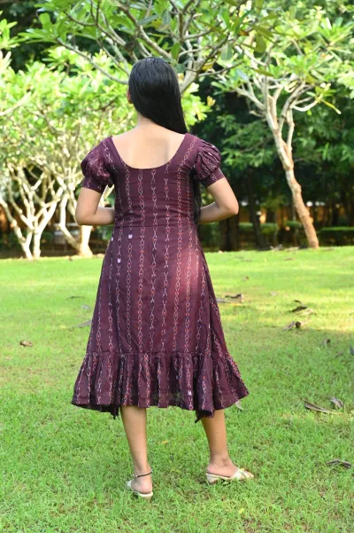 Sambalpuri Stylish One Piece Flared Midi Dress (one-piece) with ethnic Ikat pattern