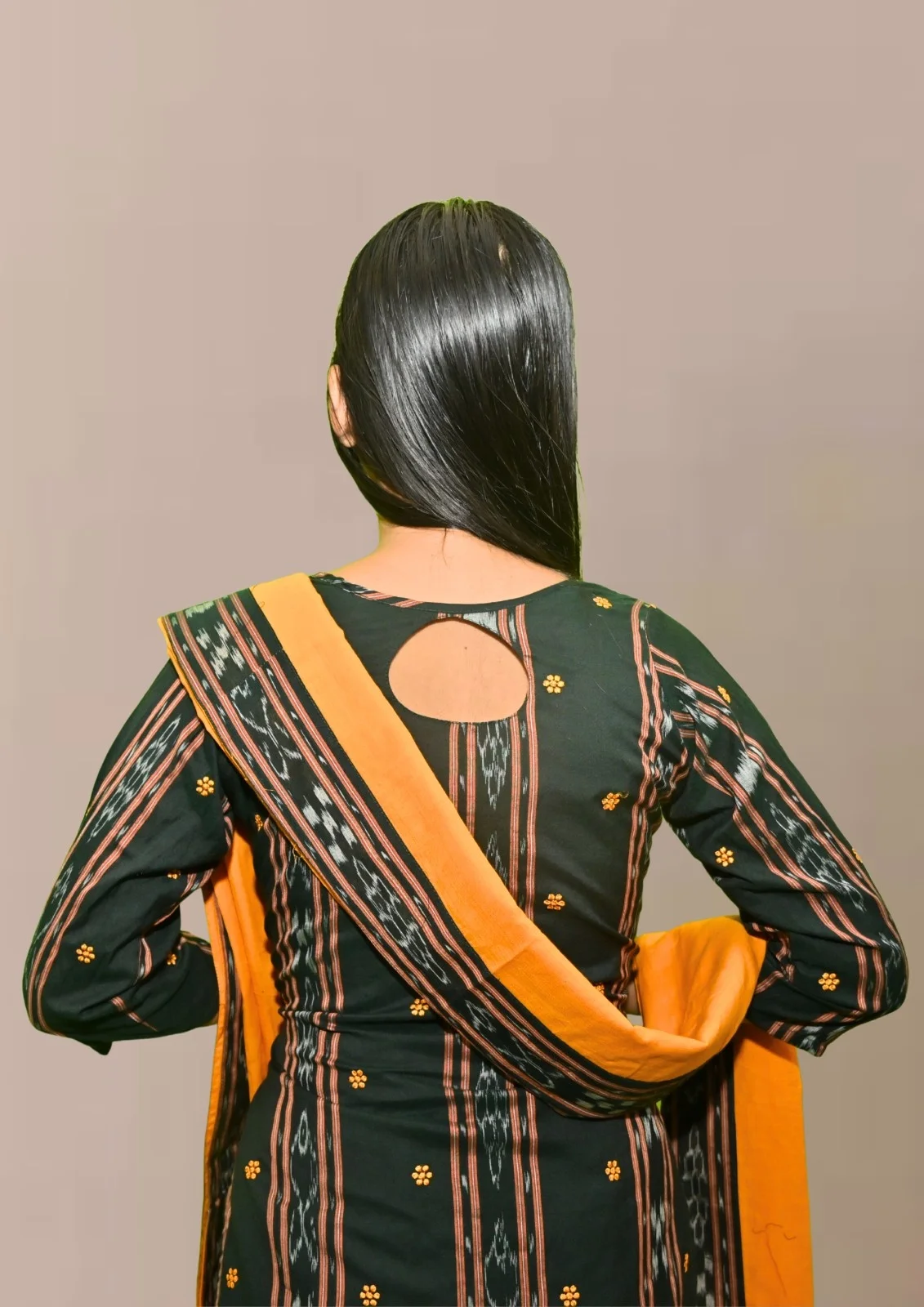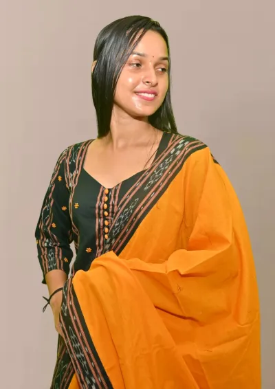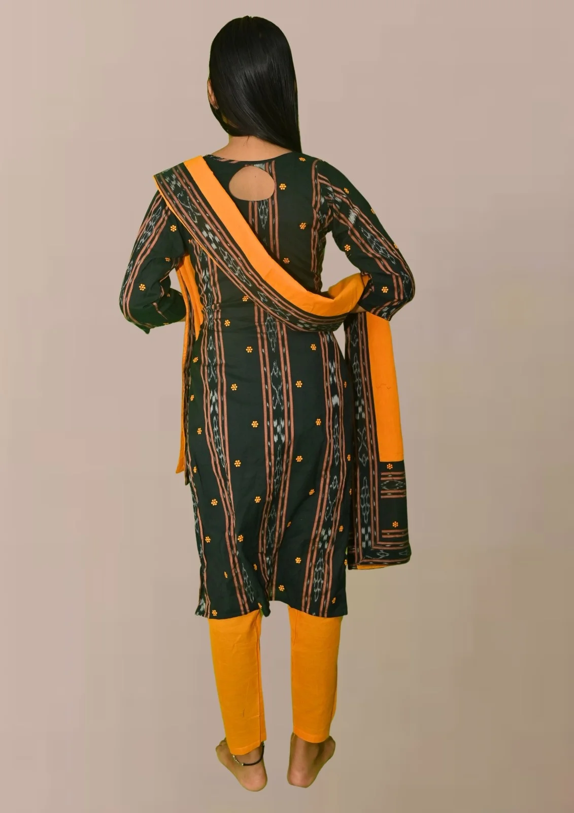 Sambalpuri Suit set Salwar Suit Set (Black & Mustard Ikat Cotton Ensemble)black and mustard combination(STITCHED)