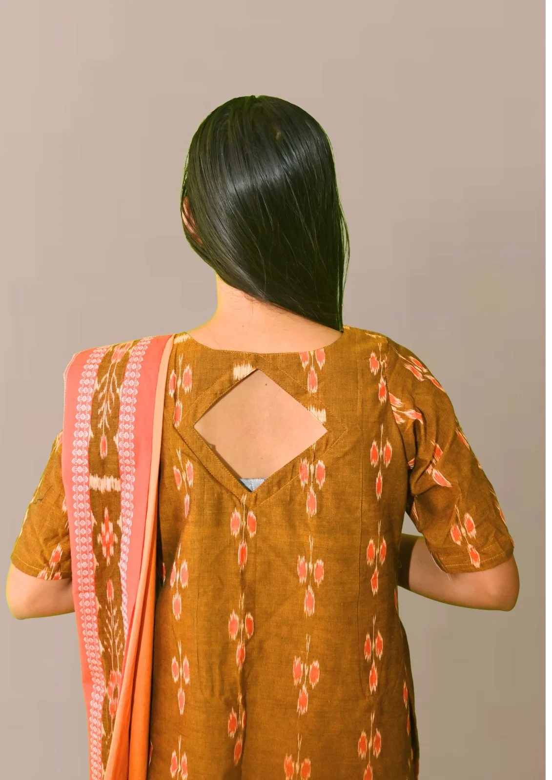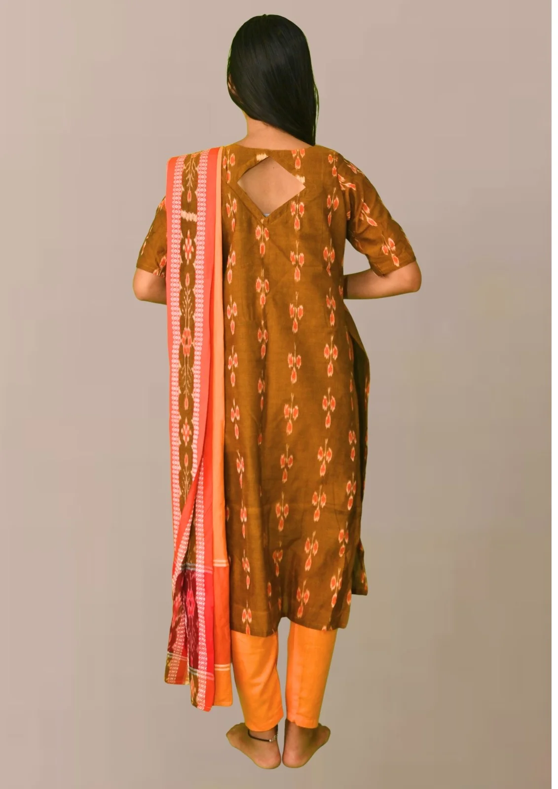 Sambalpuri Suit set Salwar Suit Set (Ethnic Ikat Style)mustard brown, orange, and red combination(STITCHED)