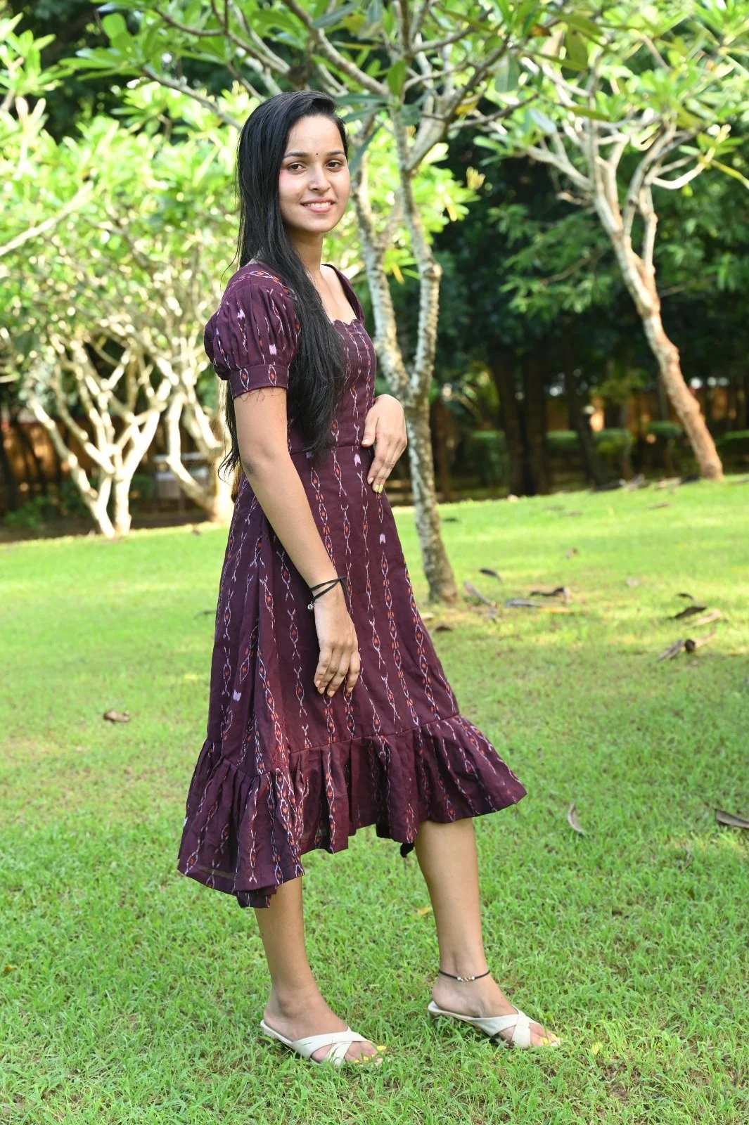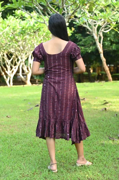 Sambalpuri Stylish One Piece Flared Midi Dress (one-piece) with ethnic Ikat pattern